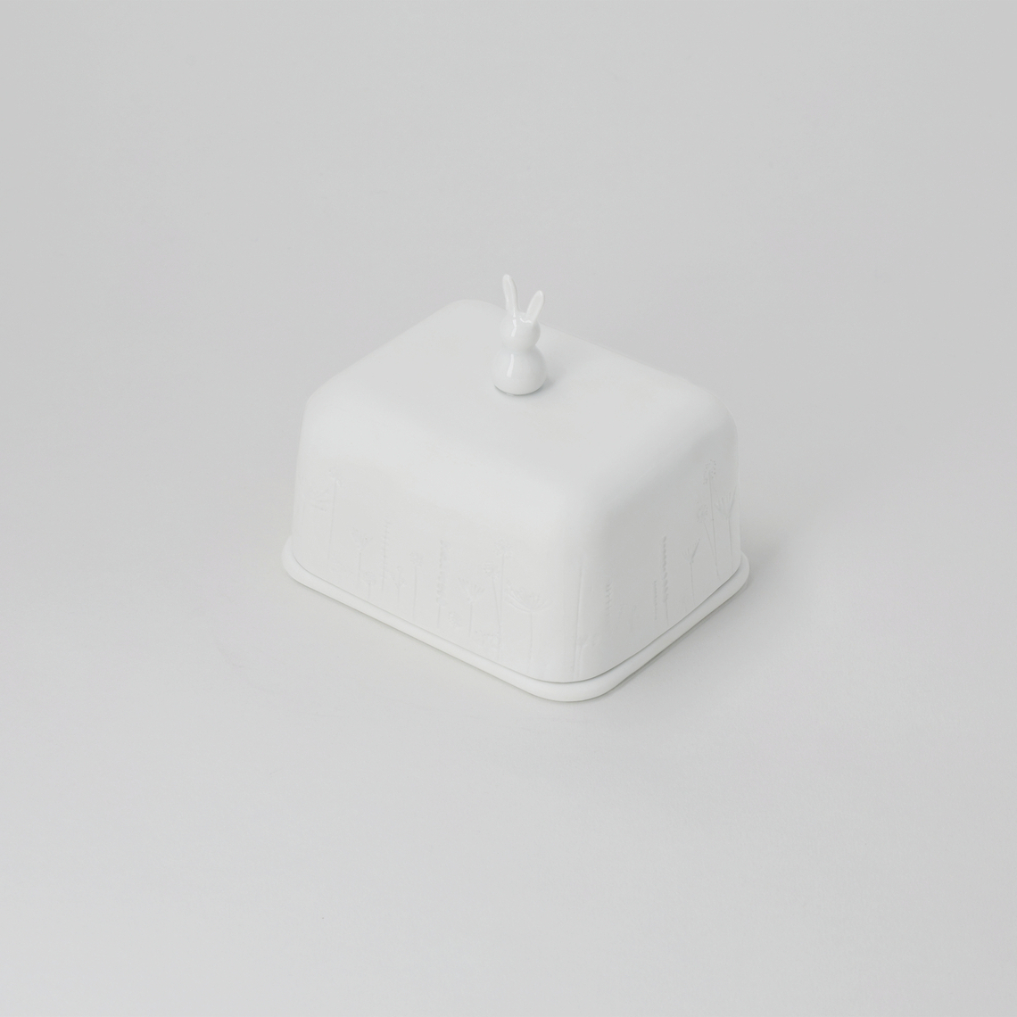 Magnifique beurrier en porcelaine blanche signé Räder, décoré de délicats motifs printaniers. Élégant et raffiné, il apporte une touche de fraîcheur à votre table.