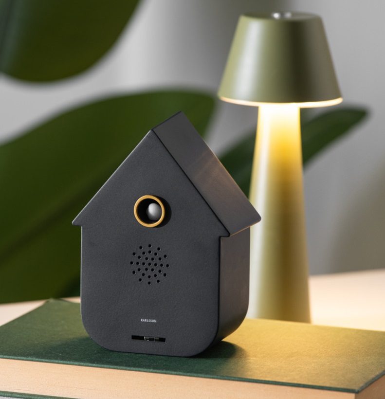 Inspirée du célèbre coucou, cette petite maison au design épuré émet un joyeux sifflement d’oiseau dès qu’elle détecte un mouvement. Le son dure 25 secondes et son volume se règle facilement grâce au bouton discret placé à l’arrière.