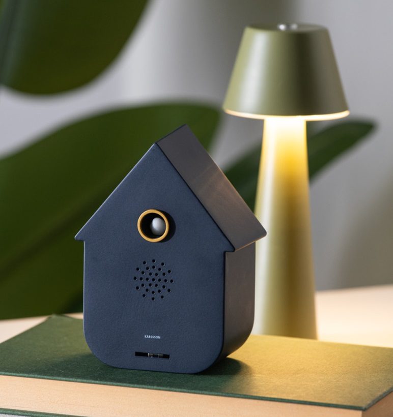 Inspirée du célèbre coucou, cette petite maison au design épuré émet un joyeux sifflement d’oiseau dès qu’elle détecte un mouvement. Le son dure 25 secondes et son volume se règle facilement grâce au bouton discret placé à l’arrière.