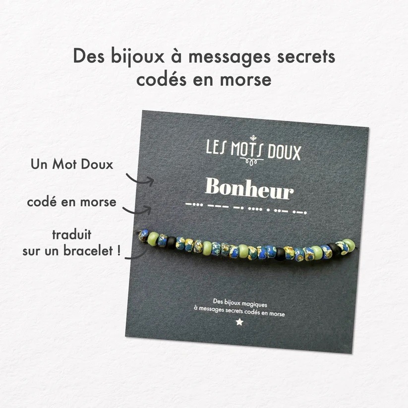 Chaque perle suit le code de l’alphabet morse pour révéler un message secret dont vous seul(e) connaissez la signification.