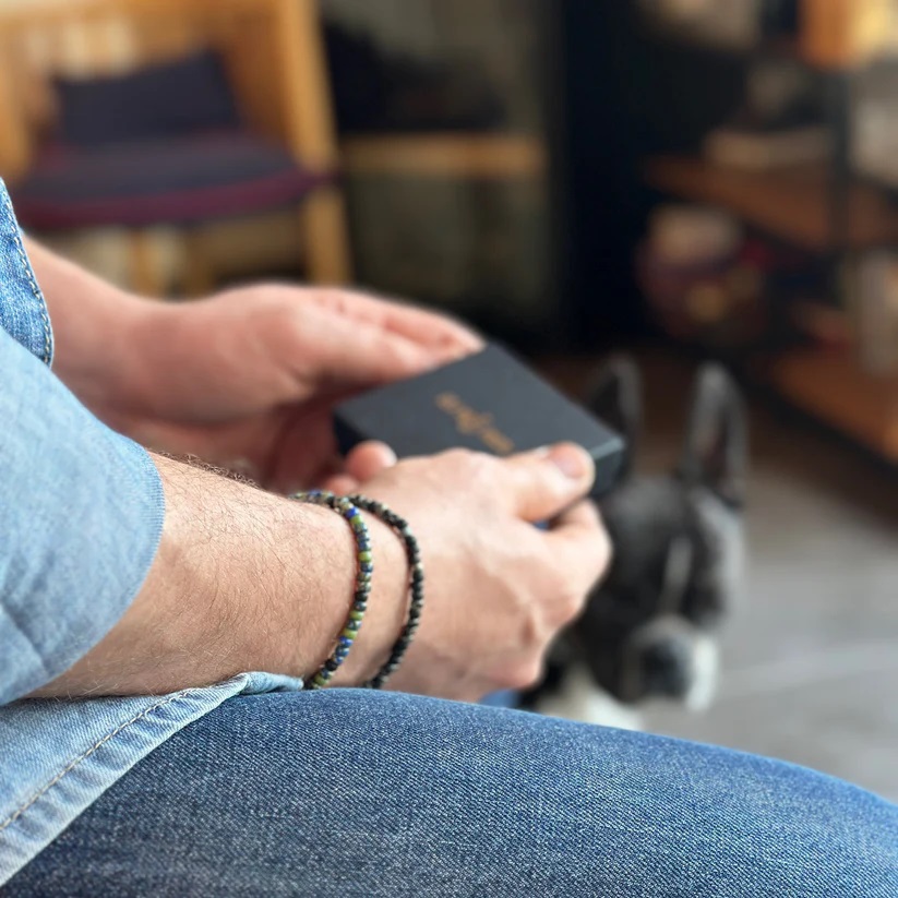 Les bracelets sont ajustables grâce à un système de nœuds coulissants, s’adaptant parfaitement à la taille de votre poignet.