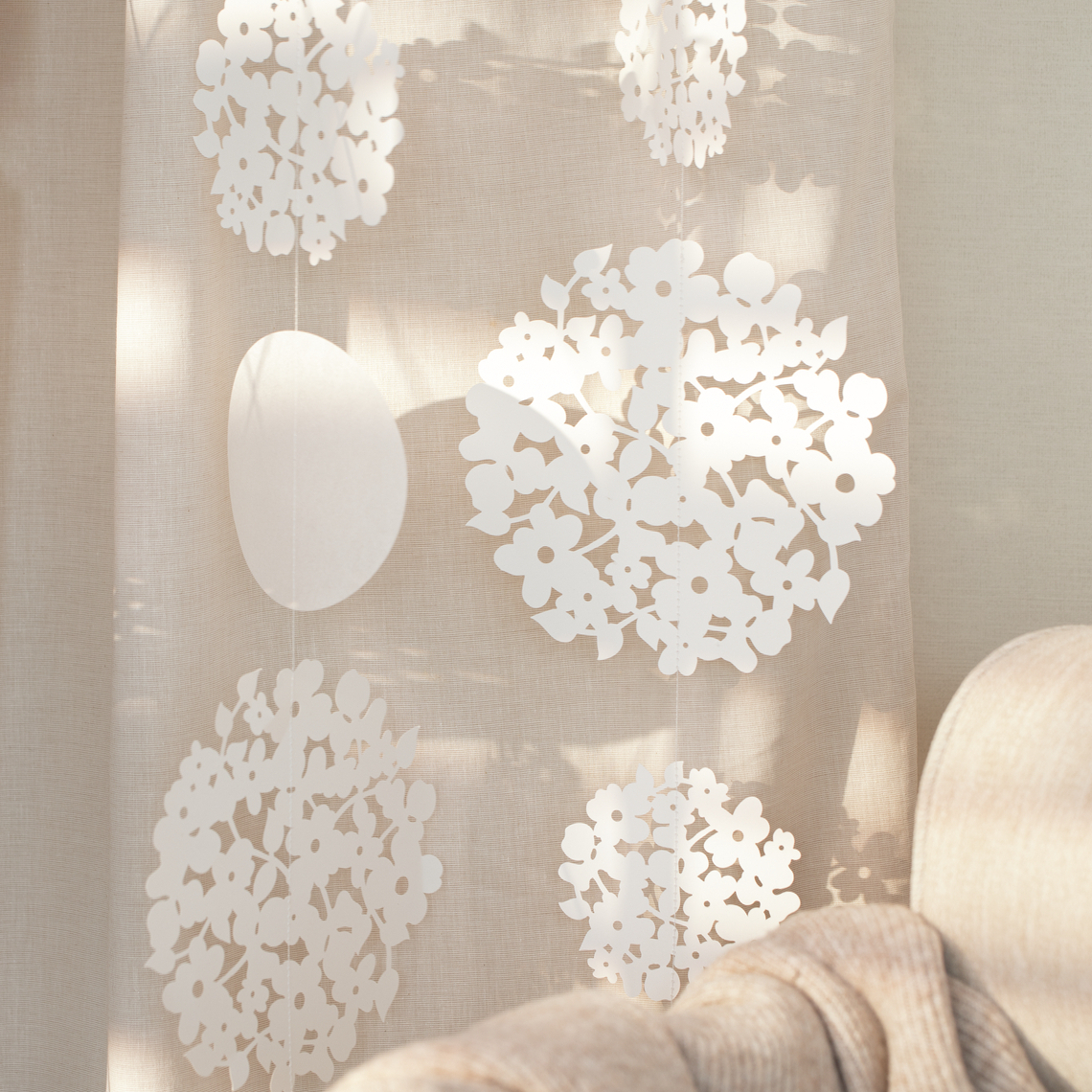 Magnifique guirlande en papier blanc, aux découpes raffinées formant un élégant motif. Idéale à placer contre un mur ou devant une fenêtre pour sublimer votre décoration.