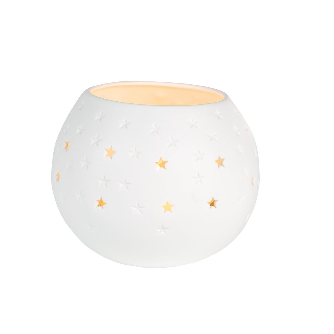 Photophore arrondi en porcelaine blanche, signé Räder. Parfait pour accueillir une bougie chauffe-plat (non fournie), il diffuse une lumière douce et élégante.