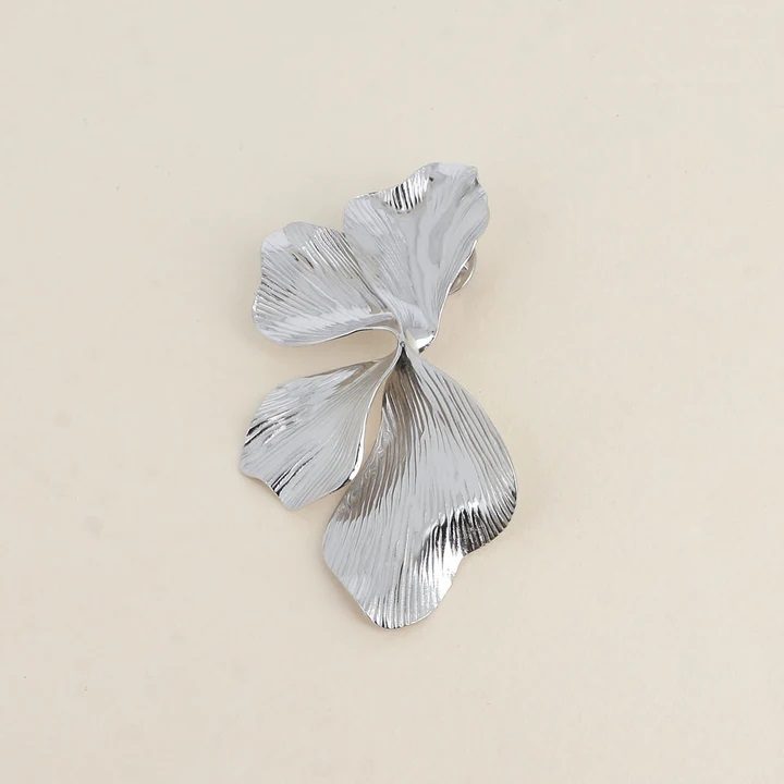 Broche type pin’s en acier inoxydable, ornée d’un motif feuillage texturé au design délicat et élégant. Une pièce raffinée qui apporte une touche naturelle à vos tenues.