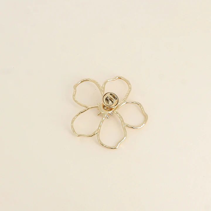 Broche type pin’s en acier inoxydable, ornée d’un motif floral ajouré au design délicat. Une touche élégante et raffinée pour accessoiriser vos tenues.