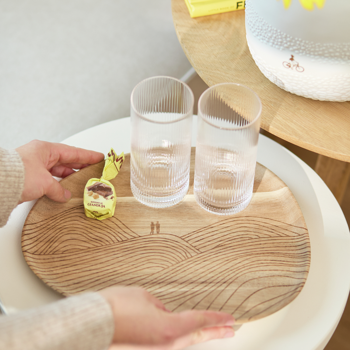 Plateau en bois d’acacia non traité, très décoratif. Parfait comme support à bougies ou pour présenter des photophores avec style.