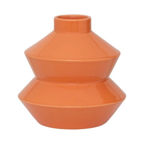 Ce vase en céramique à la teinte nectarine et à la finition brillante séduit par sa silhouette géométrique et affirmée. Une pièce moderne et dynamique qui attire le regard et structure votre décoration.